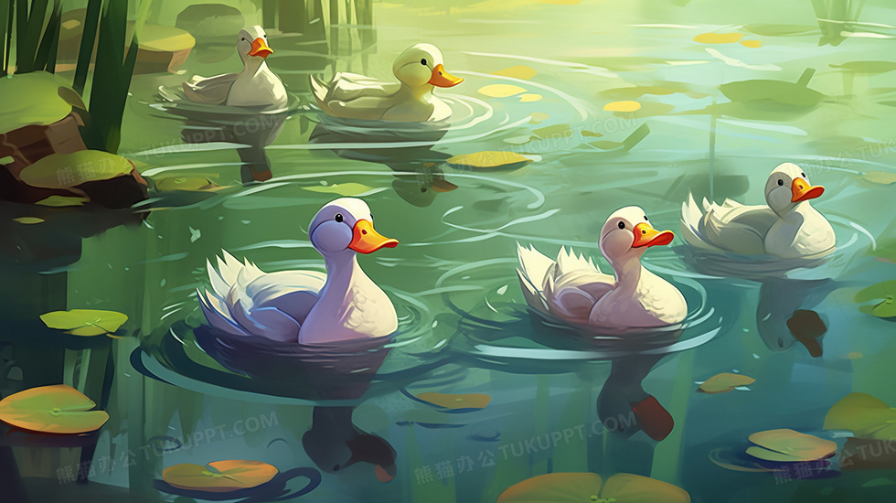本作品内容为彩色卡通夏季池塘中的小鸭子, 格式为 jpg, 大小5 MB, 图片尺寸为2912 x 1632, 源文件无水印, 欢迎使用熊猫办公。 如认为平台内容涉嫌侵权,可通过邮件:tousu@tukuppt.com提出书面通知,我们将及时处理。