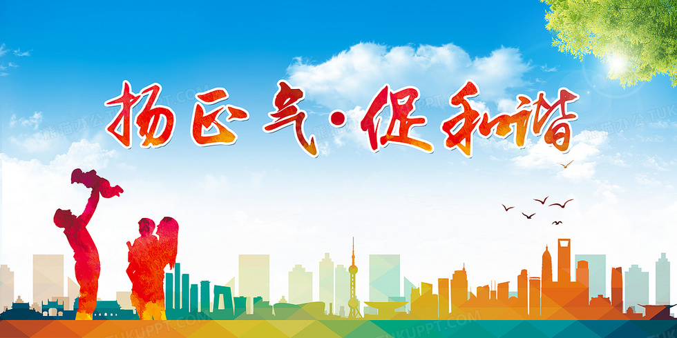 本作品内容为扬正气促和谐彩色几何城市剪影背景, 格式为 jpg, 图片尺寸为7087 x 3543, 作品中背景图片无需修改, 源文件无水印,可以直接使用, 欢迎使用熊猫办公。 如认为平台内容涉嫌侵权,可通过邮件:tousu@tukuppt.com提出书面通知,我们将及时处理。
