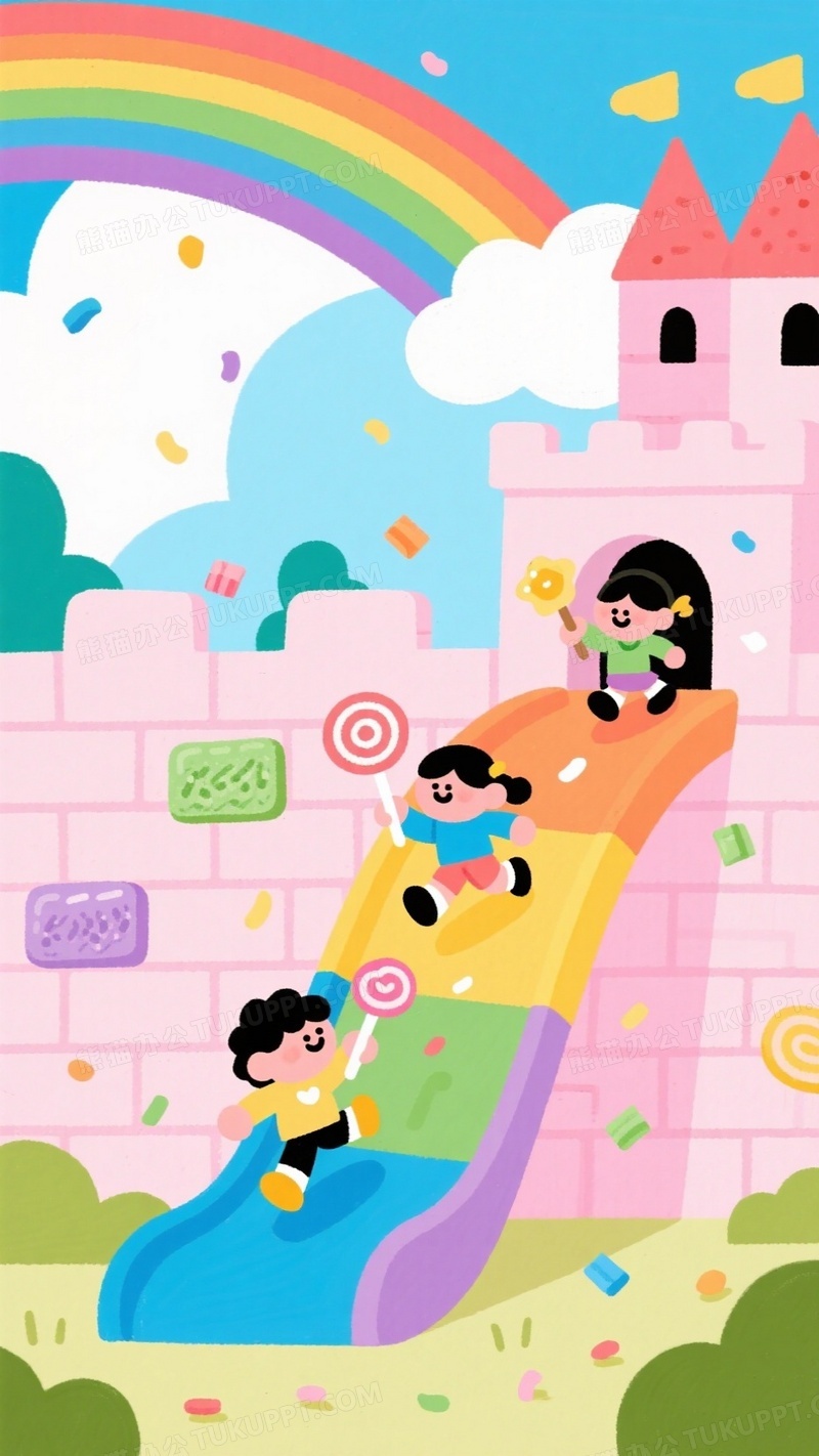 本作品内容为矢量扁平化卡通插画Q版小朋友在棒棒糖滑梯追逐, 格式为 jpg, 大小1 MB, 图片尺寸为936 x 1664, 源文件无水印, 欢迎使用熊猫办公。 如认为平台内容涉嫌侵权,可通过邮件:tousu@tukuppt.com提出书面通知,我们将及时处理。