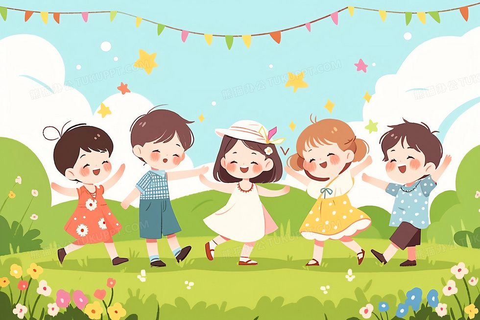 本作品内容为清新卡通小朋友们在草地上跳舞插图, 格式为 jpg, 大小3 MB, 图片尺寸为2688 x 1792, 源文件无水印, 欢迎使用熊猫办公。 如认为平台内容涉嫌侵权,可通过邮件:tousu@tukuppt.com提出书面通知,我们将及时处理。